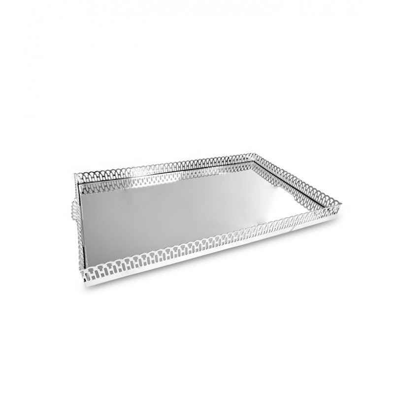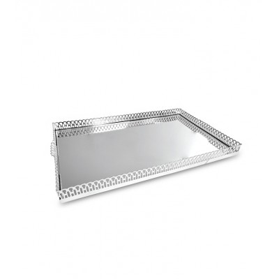 Bandeja retangular com grade e espelho - 60x40x8cm fabricada em Prata Apolo de altíssima qualidade, mantendo assim suas características originais e preservando o seu requinte, elegância e brilho por muito mais tempo. Seus detalhes valorizam em muito a peça, seu design proporciona beleza, praticidade e um toque de sofisticação ao ambiente a ele destinado.
