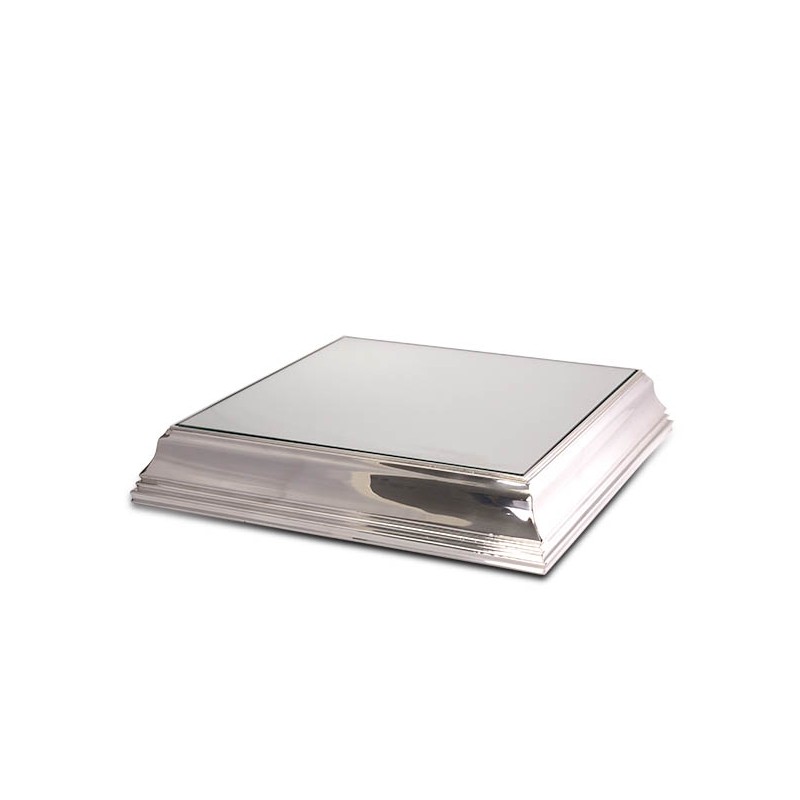 Base de Prata Apolo quadrada para Bolo e Doces com Espelho 30x30cm x 10cm Altura, é fabricada em Prata Apolo de altíssima qualidade. Seus detalhes proporciona beleza, praticidade e um toque de sofisticação.