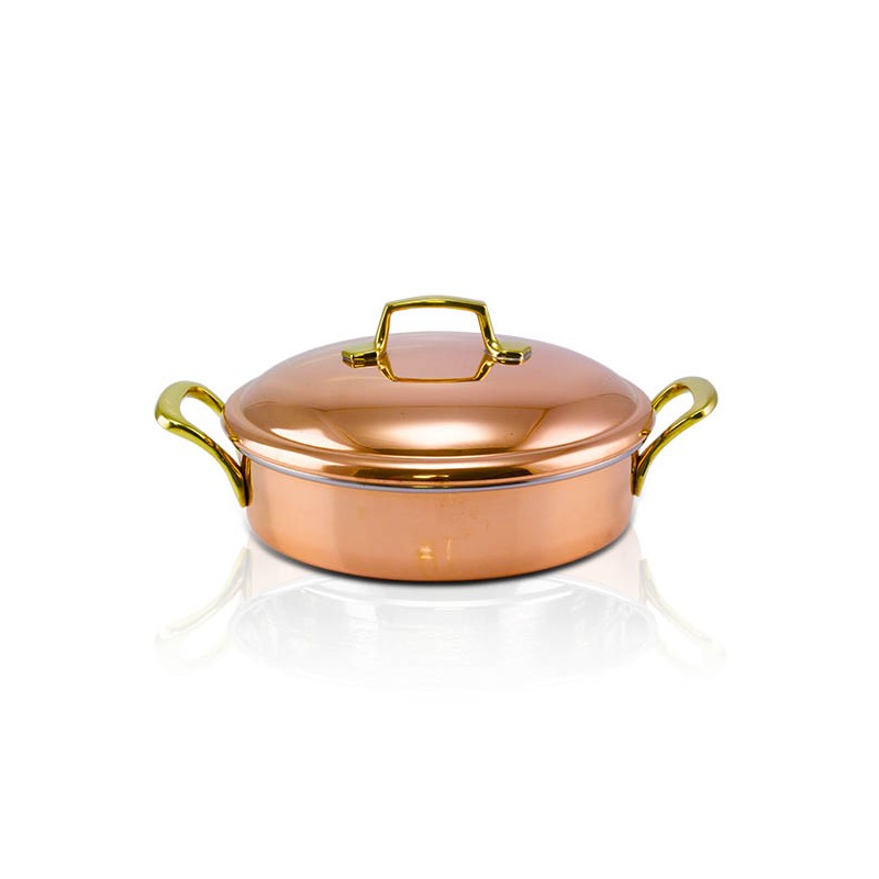 Caçarola em Cobre Fundo Reto com 2 Alças e Tampa Ø33cm, é fabricada em Cobre Apolo de altíssima qualidade, mantendo assim suas características originais.