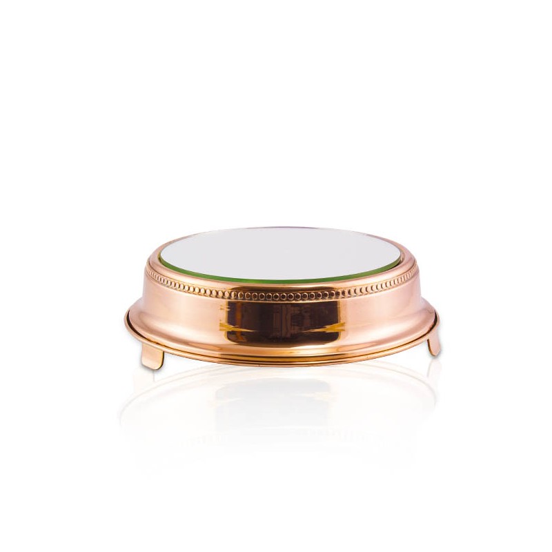 Base redonda cobre com espelho - Ø59 cm - 10cm alt. fabricada em Cobre Apolo de altíssima qualidade, mantendo assim suas características originais e preservando o seu requinte, elegância e brilho por muito mais tempo. Seus detalhes valorizam em muito a peça, seu design proporciona beleza, praticidade e um toque de sofisticação ao ambiente a ele destinado.