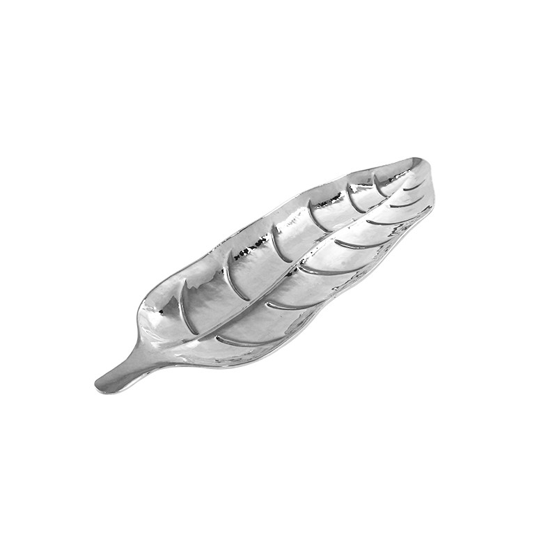 Travessa folha maranta gigante 86 x 26 cm fabricada em Prata Apolo de altíssima qualidade, mantendo assim suas características originais e preservando o seu requinte, elegância e brilho por muito mais tempo. Seus detalhes valorizam em muito a peça, seu design proporciona beleza, praticidade e um toque de sofisticação ao ambiente a ele destinado.