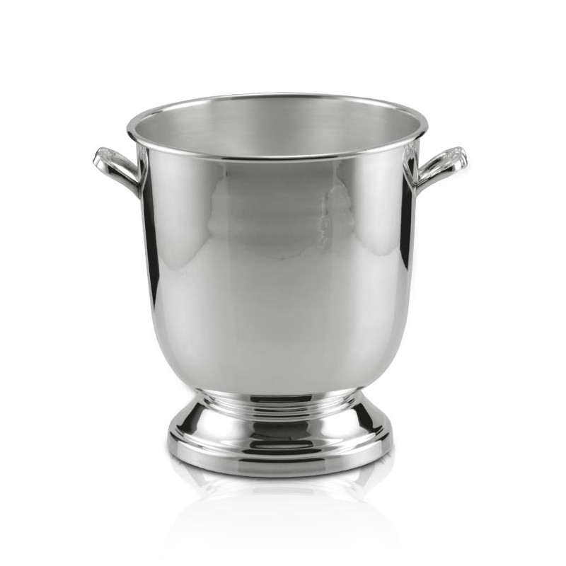 Balde para Champanhe Cannes em Prata Ø22x24cm Altura, é fabricado em Prata Apolo de altíssima qualidade. Seus detalhes valorizam em muito a peça, seu design proporciona beleza, praticidade e um toque de sofisticação ao ambiente a ele destinado.