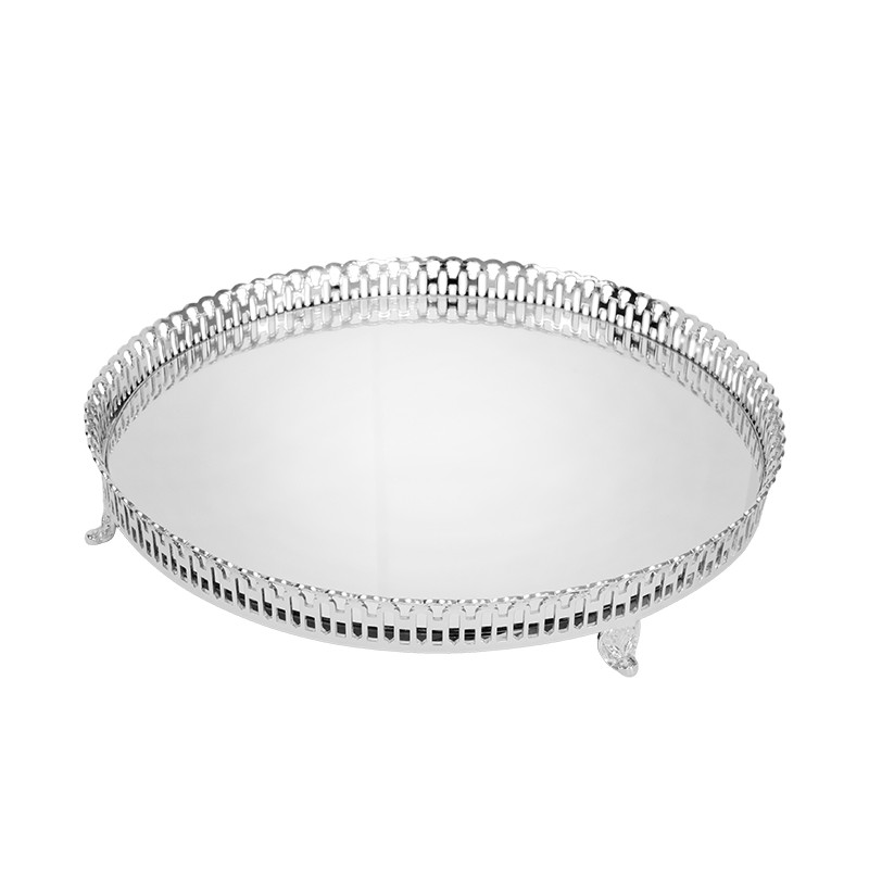 Bandeja redonda com grade e espelho e pé 40 cm Apolo, é fabricada em Prata Apolo de excelente qualidade, proporcionando durabilidade e características originais por muito mais tempo.