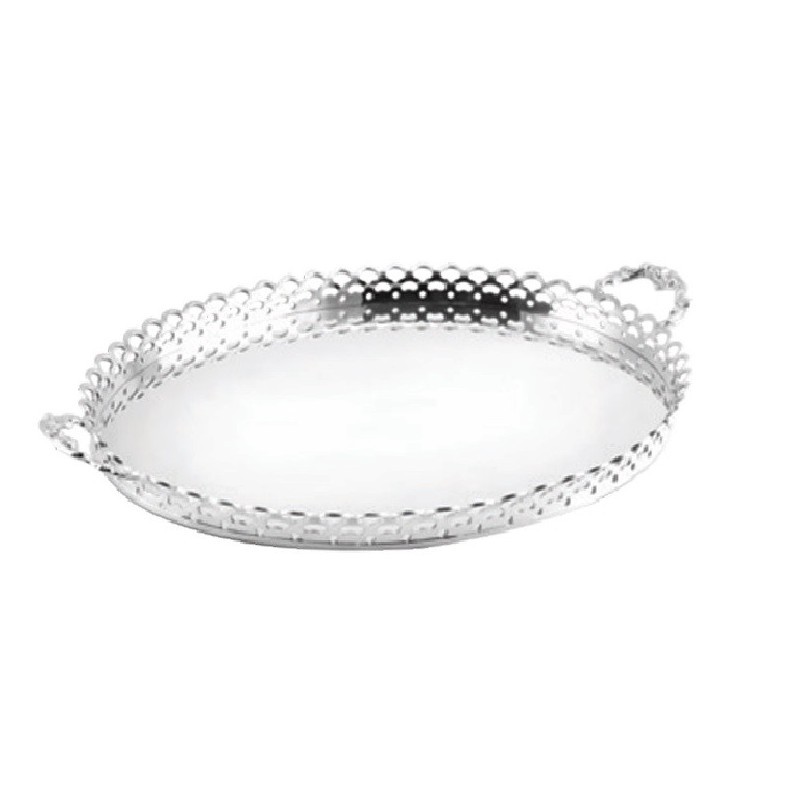 Bandeja Oval com Grade Alta 50x40cm em Prata, é fabricada em Prata Apolo de excelente qualidade, proporcionando durabilidade e características originais por muito mais tempo. Muito utilizada em Buffet, Restaurante, Hotel e também no uso doméstico, onde servir com requinte é fundamental.