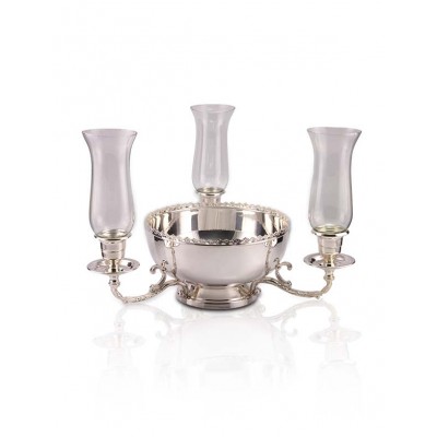 Floreira centro de mesa pequeno 3 velas com mangas de vidro - Ø35 x 12 alt. fabricada em Prata Apolo de altíssima qualidade, mantendo assim suas características originais e preservando o seu requinte, elegância e brilho por muito mais tempo. Seus detalhes valorizam em muito a peça, seu design proporciona beleza, praticidade e um toque de sofisticação ao ambiente a ele destinado.