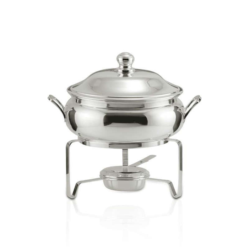 Rechaud com panela banho maria pequeno - 3 litros fabricada em Prata Apolo de altíssima qualidade, mantendo assim suas características originais e preservando o seu requinte, elegância e brilho por muito mais tempo. Seus detalhes valorizam em muito a peça, seu design proporciona beleza, praticidade e um toque de sofisticação ao ambiente a ele destinado.