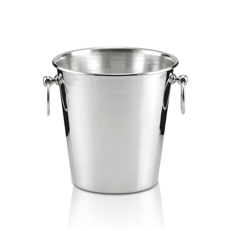 Balde para champanhe ou vinho no formato cônico, feito com banho de prata pela Apolo com 20cm de diâmetro e 20cm de altura. Conslte nossos prazos de entrega.