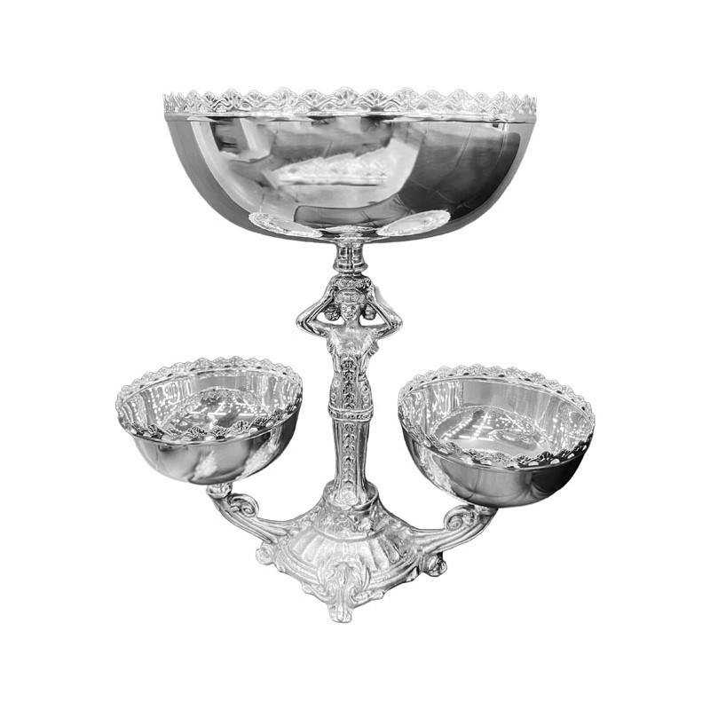 Fruteira ou decoração de mesa em prata Deusa Mirtes, ideal para buffets e mesas de hotéis com 34cm de altura.