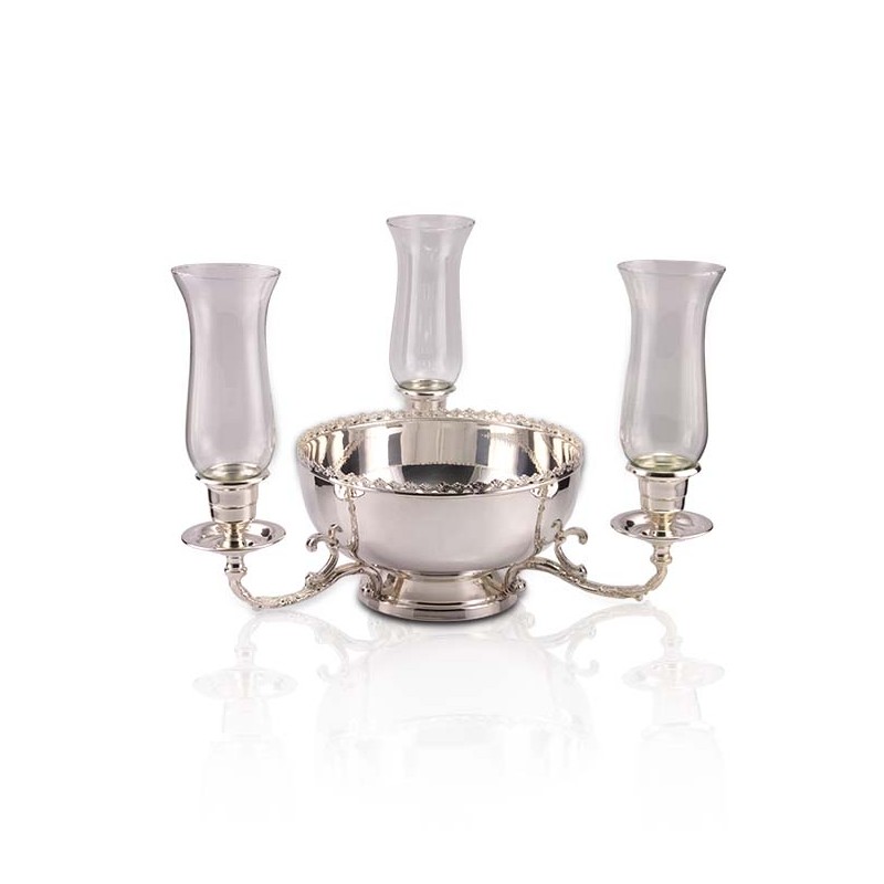 Floreira centro de mesa pequeno 3 velas com mangas de vidro - Ø35 x 12 alt. fabricada em Prata Apolo de altíssima qualidade, mantendo assim suas características originais e preservando o seu requinte, elegância e brilho por muito mais tempo. Seus detalhes valorizam em muito a peça, seu design proporciona beleza, praticidade e um toque de sofisticação ao ambiente a ele destinado.