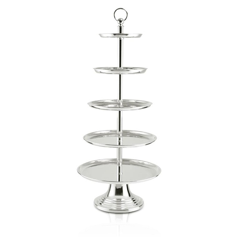 Doceira 5 Andares em Prata 80cm Altura, é fabricada em Prata Apolo de excelente qualidade, proporcionando durabilidade e características originais por muito mais tempo. Muito utilizada em Buffet, Restaurante, Hotel e também no uso doméstico, onde servir com requinte é fundamental.