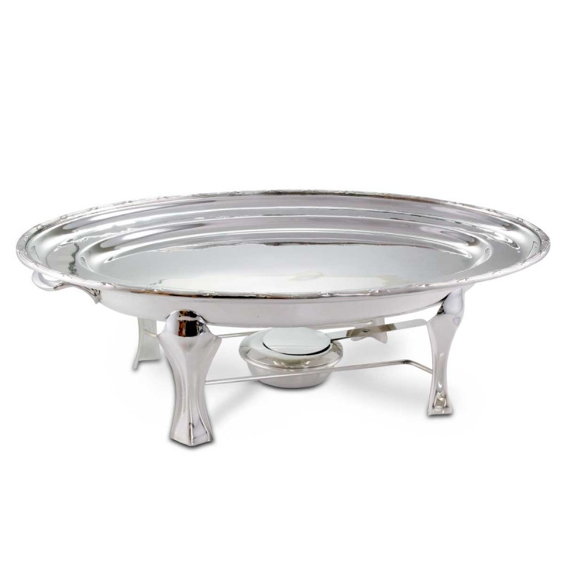 Rechaud banho maria com travessa oval rasa croise - 63x43cm fabricada em Prata Apolo de altíssima qualidade, mantendo assim suas características originais e preservando o seu requinte, elegância e brilho por muito mais tempo. Seus detalhes valorizam em muito a peça, seu design proporciona beleza, praticidade e um toque de sofisticação ao ambiente a ele destinado.
