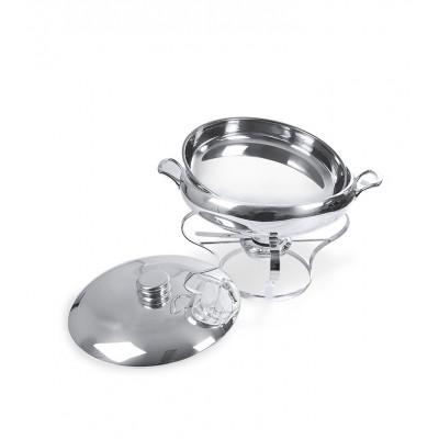 Rechaud lune banho maria com cuba inox 6 litros fabricada em Prata Apolo de altíssima qualidade, mantendo assim suas características originais e preservando o seu requinte, elegância e brilho por muito mais tempo. Seus detalhes valorizam em muito a peça, seu design proporciona beleza, praticidade e um toque de sofisticação ao ambiente a ele destinado.