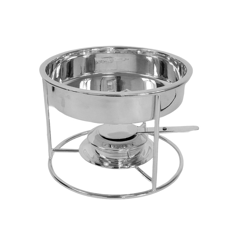 Rechaud de fabricação Apolo em Prata, no formato Redondo e cuba de prata em Banho Maria. Possui capacidade de 4 litros, ideal para mesas de pequeno ou médio porte.