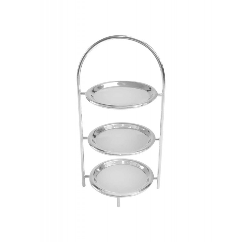 Mini suporte para doces redondo 3 andares Ø12x25 alt. fabricada em Prata Apolo de altíssima qualidade, mantendo assim suas características originais e preservando o seu requinte, elegância e brilho por muito mais tempo. Seus detalhes valorizam em muito a peça, seu design proporciona beleza, praticidade e um toque de sofisticação ao ambiente a ele destinado.