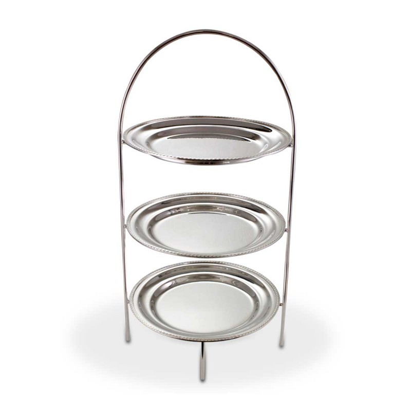 Suporte para doces redondo 3 andares - Ø30x 45cm alt fabricada em Prata Apolo de altíssima qualidade, mantendo assim suas características originais e preservando o seu requinte, elegância e brilho por muito mais tempo. Seus detalhes valorizam em muito a peça, seu design proporciona beleza, praticidade e um toque de sofisticação ao ambiente a ele destinado.
